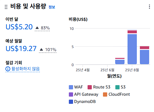 - 현재 청구되는 요금의 대부분이 WAF 비용이다.