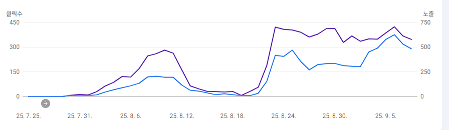 - SEO가 회복과 키워드 변경이 크게 효과가 있었는지, 평균 방문자수가 300명 가까이 치솟았다!