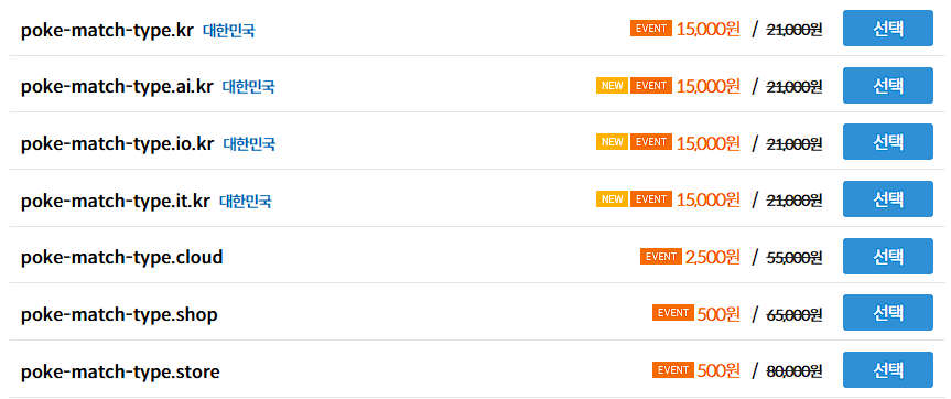 - 나는 2500원을 주고 poke-match-type.site 도메인을 구매했다!