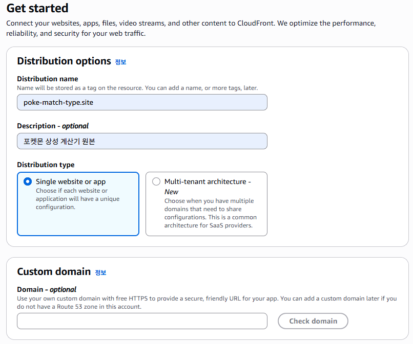 - 나는 도메인명으로 작성했지만 이와는 상관없으며 단순 CloudFront 배포의 구분이다.