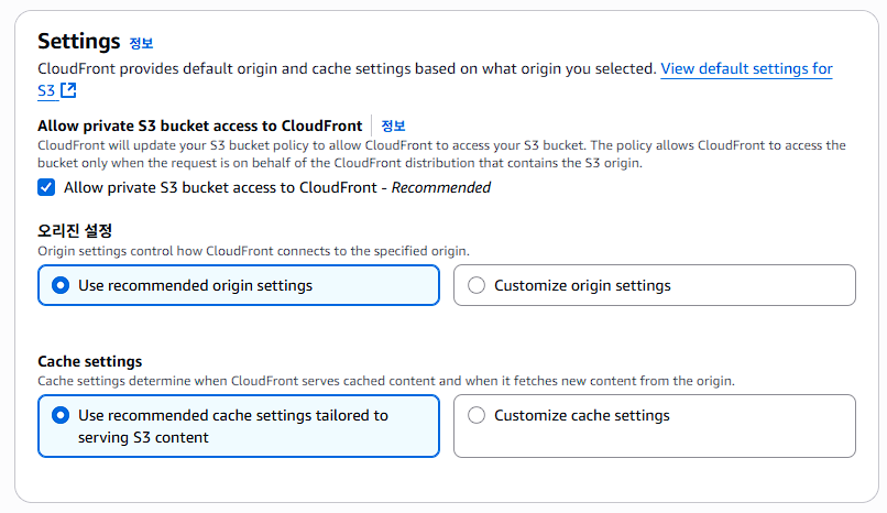 - 앞선 원본 배포와 동일한 방법으로 CloudFront 배포를 생성한다.