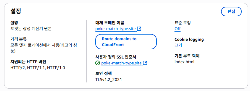 이를 통해 해당 도메인에 대해 CloudFront 배포 연결 및 ACM SSL 인증서 적용이 가능하다.